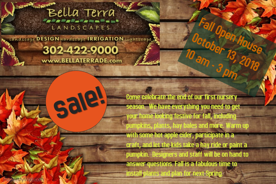 Come Celebrate the end of our first nursery season. We have everything you need to get your home looking festive for fall, including pumpkins, plants, hay bales and more. Warm up with some hot apple cider, parcipate in a craft and let the kids take a hay ride or paint a pumpkin. Designers and staff will be on hand to answer questions. Fall is a fabulos time to install plants and plan for next Spring.